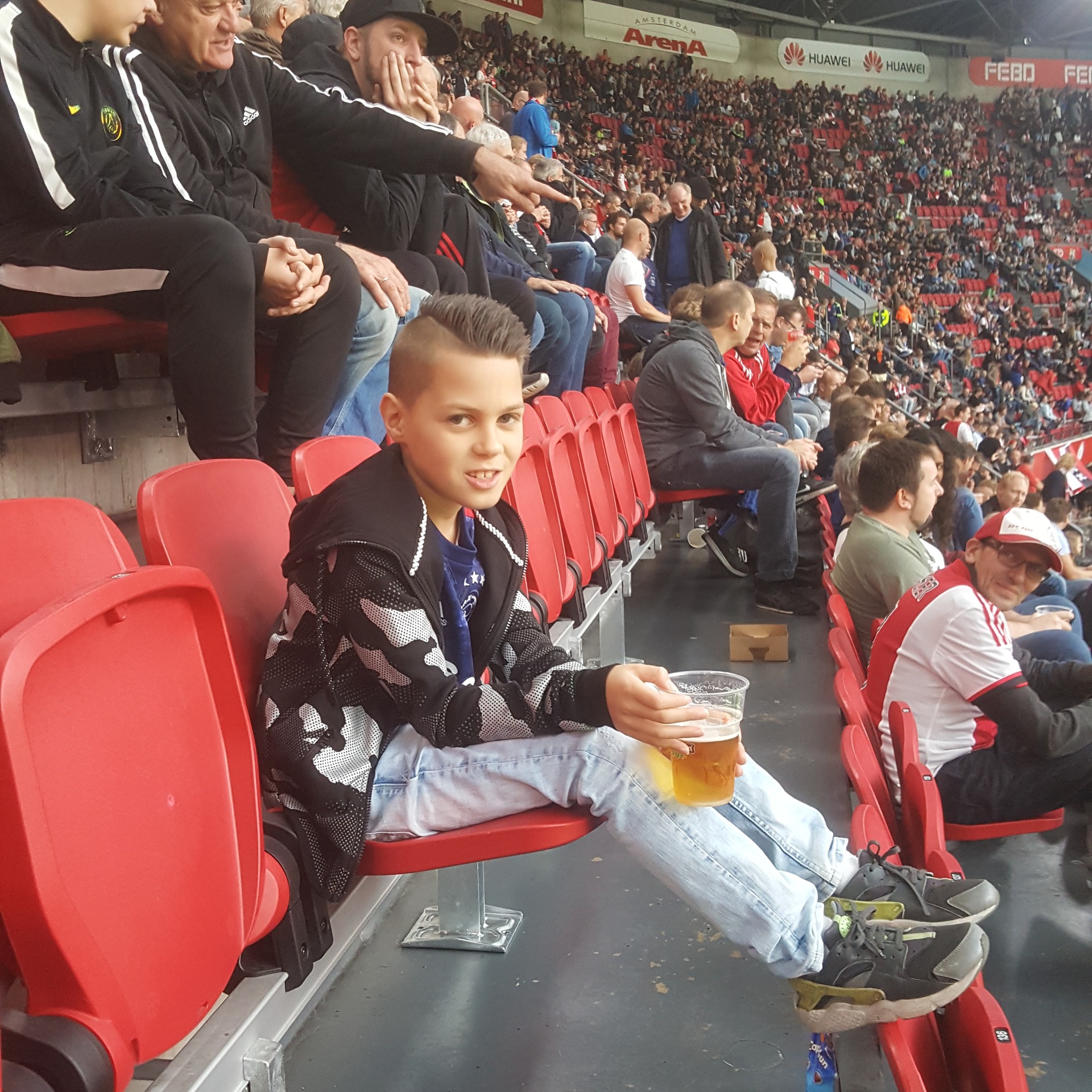 Ikzelf ben regelmatig in het stadion geweest, niet altijd, want ik kan ook niet iedere keer mee. De laatste wedstrijd en bezichtiging waar ik dus bij was, was op 26 januari. Hieronder een oude foto van mij van een aantal jaar geleden. Dat drankje was natuurlijk niet van mij, maar van mijn vader die op dat moment de foto maakte ;)