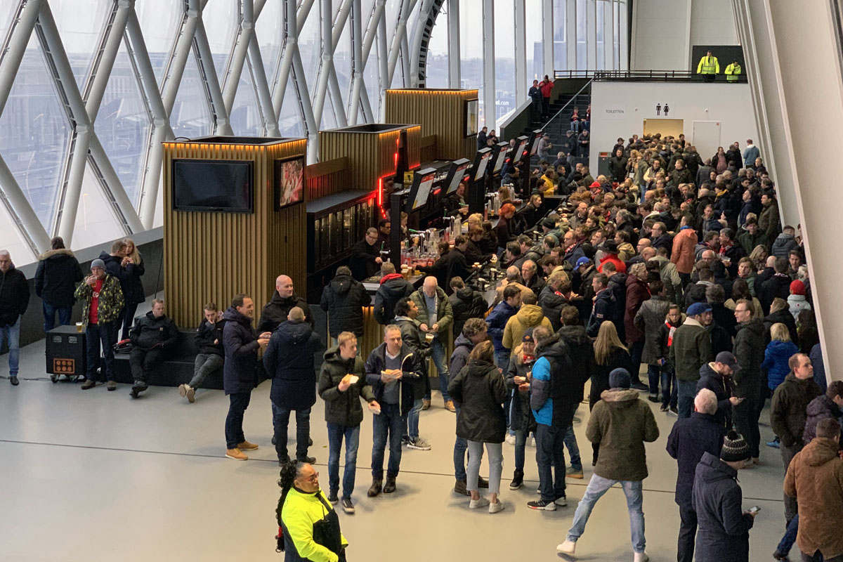 Het gebouw lijkt van buiten al gigantisch, maar zodra je de trap oploopt richting de tribunes en daadwerkelijk het stadion betreedt, ben je omringd in één grote menigte vol fans die de spelers toejuichen en meezingen met de muziek die vooraf wordt afgespeeld. Vaak is dat het nummer Bloed, Zweet & Tranen van André Hazes. Dat moment wanneer je binnentreed voelt altijd magisch waarvan je kippenvel krijgt, omdat de sfeer en het gebouw waarin je stapt zo immens is. Van binnen lijkt het dus nóg groter.