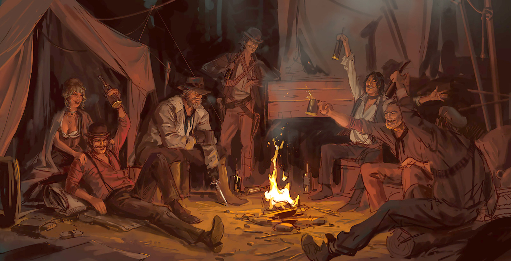 Verschillende soorten concept art van Red Dead Redemption 2